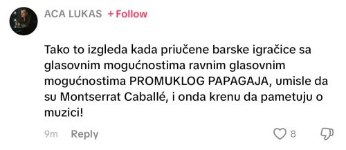 Home » ACA LUKAS O MILICI PAVLOVIĆ: „PRIUČENE BARSKE IGRAČICE MISLE DA SU MONSERRAT CABALLÉ!“