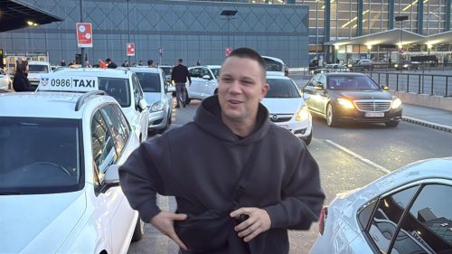 Reper Relja Popović se posle održanog nastupa vratio u Beograd, a naša ekipa ga je dočekala na aerodromu.