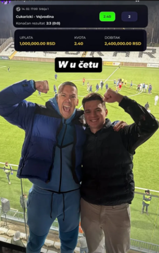 Pre utakmice je uplatio milion dinara na pobedu Vojvodine na kvotu 2.40, što mu je donelo zaradu od čak 2.400.000 dinara.