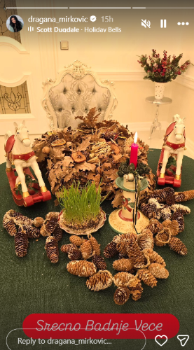 Pevačica Dragana Mirković podelila je fotografije na svom Instagram profilu iz svog prazničnog doma u blizini Beča, koji je potpuno okićen u duhu Božića. Njene objave izazvale su brojne reakcije fanova, koji su posebno pohvalili toplu i svečanu atmosferu doma.