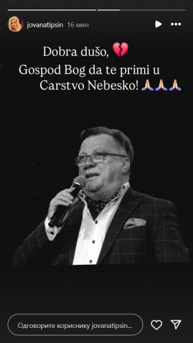 Pevačica narodne muzike Jovana Tipšin oglasila se na svom Instagram profilu povodom smrti legende balkanske muzičke scene, Halida Bešlića.