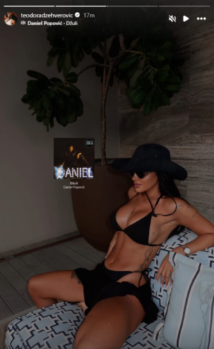 Pevačica Teodora Džehverović ponovo je privukla veliku pažnju javnosti objavom na društvenim mrežama. Na novim fotografijama koje je podelila sa pratiocima, Teodora pozira u crnom bikiniju koji ističe njenu vitku figuru, dok su posebnu pažnju privukle tetovaže na njenom telu.