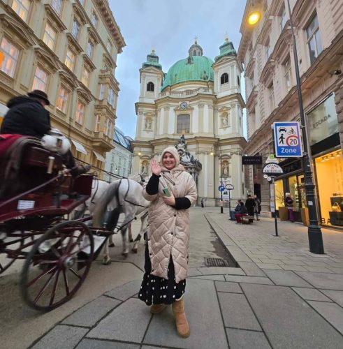 U jeku priprema za Novu godinu i Božić, grad je okićen hiljadama svetiljki, a božićni sajmovi mirisali su na topla peciva, kuvano vino i čuvene bečke kolače. Par je uživao u laganoj šetnji kroz centar, fotografisao se i posetio neke od najpoznatijih bečkih lokacija.