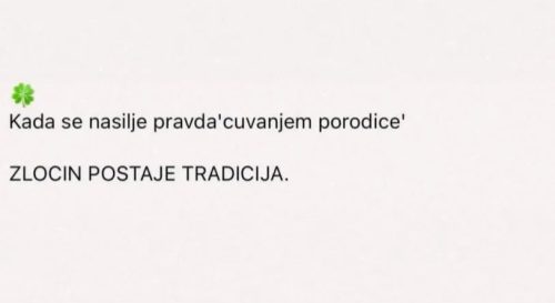 „Kada se nasilje pravda ‘čuvanjem porodice’ zločin postaje tradicija“, piše u objavi Hane Ikodinović, uz koju je dodata detelina sa četiri lista.