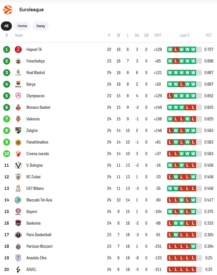 EVROLIGA – 24. kolo
