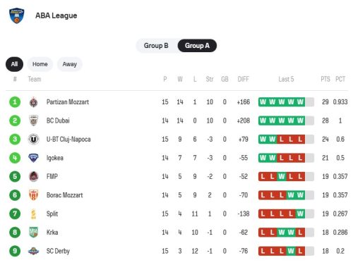 Kluž je novim neuspehom došao do skora 9-6, ali zauzima i dalje visoko treće mesto u A grupi ABA lige.