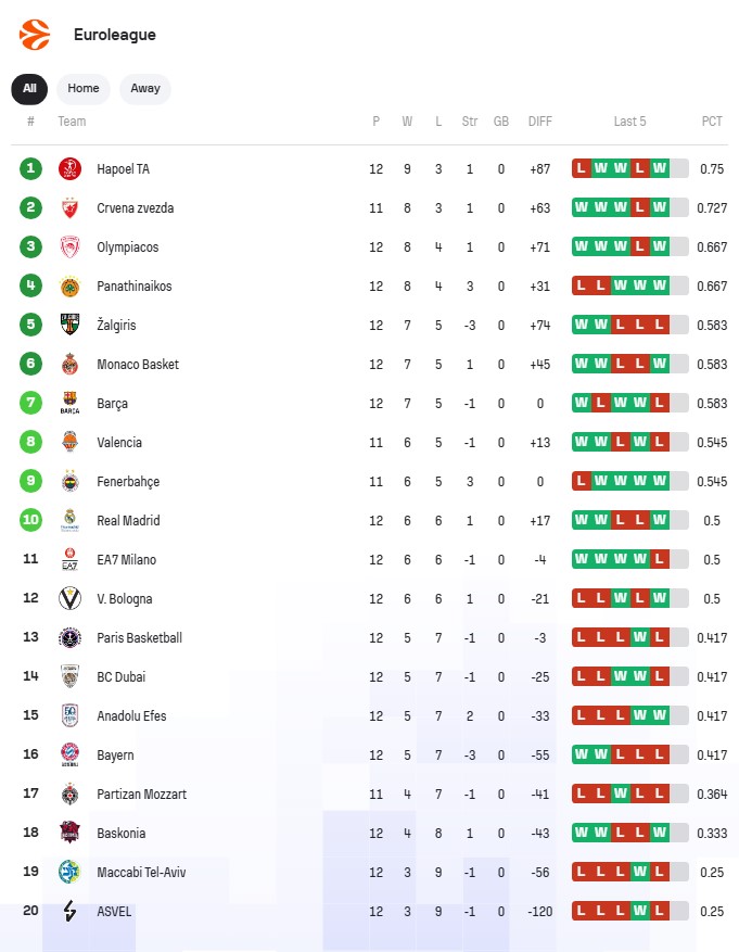 EVROLIGA – 12. kolo