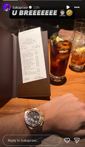 Poznat po tome što često ističe svoje luksuzne automobile, stan od 400 kvadrata i otvoreno priča o svojoj potrošnji, Baka je ovoga puta podelio račun sa večere koji je iznosio gotovo 1.400 evra.