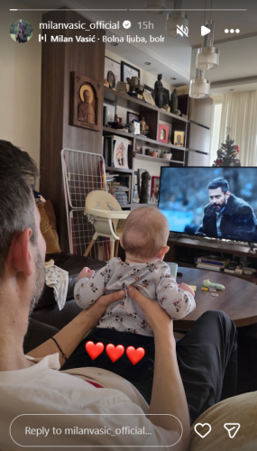 Naime, Milan je objavio fotografiju na kojoj njegov naslednik sedi kod njega u krilu dok gledaju film u kojem zravo on glumi.