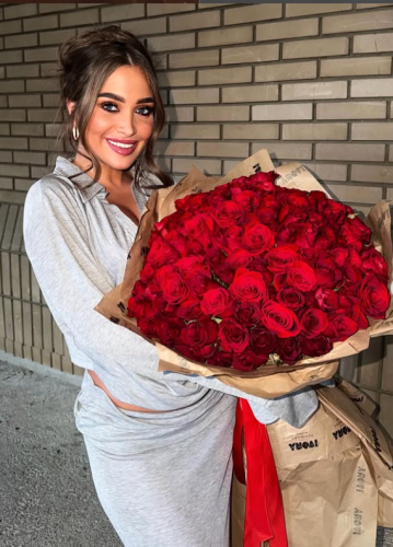 Milica nije skidala osmeh sa lica dok je pozirala pored impozantnog aranžmana, a romantični gest odmah je pokrenuo lavinu komentara na društvenim mrežama.