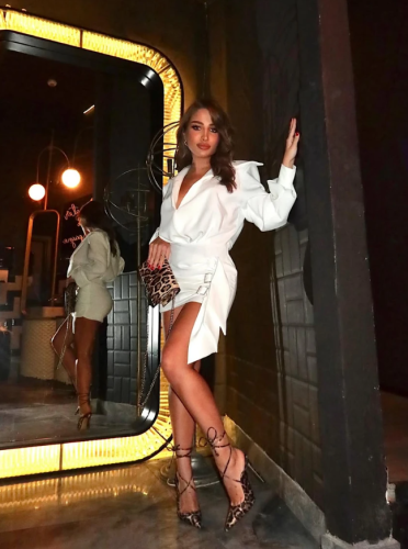 Provokativan stajling izazvao je brojne komentare njenih pratilaca, a pažnju su posebno privukli detalji poput visokog šlica i odvažnog kroja.