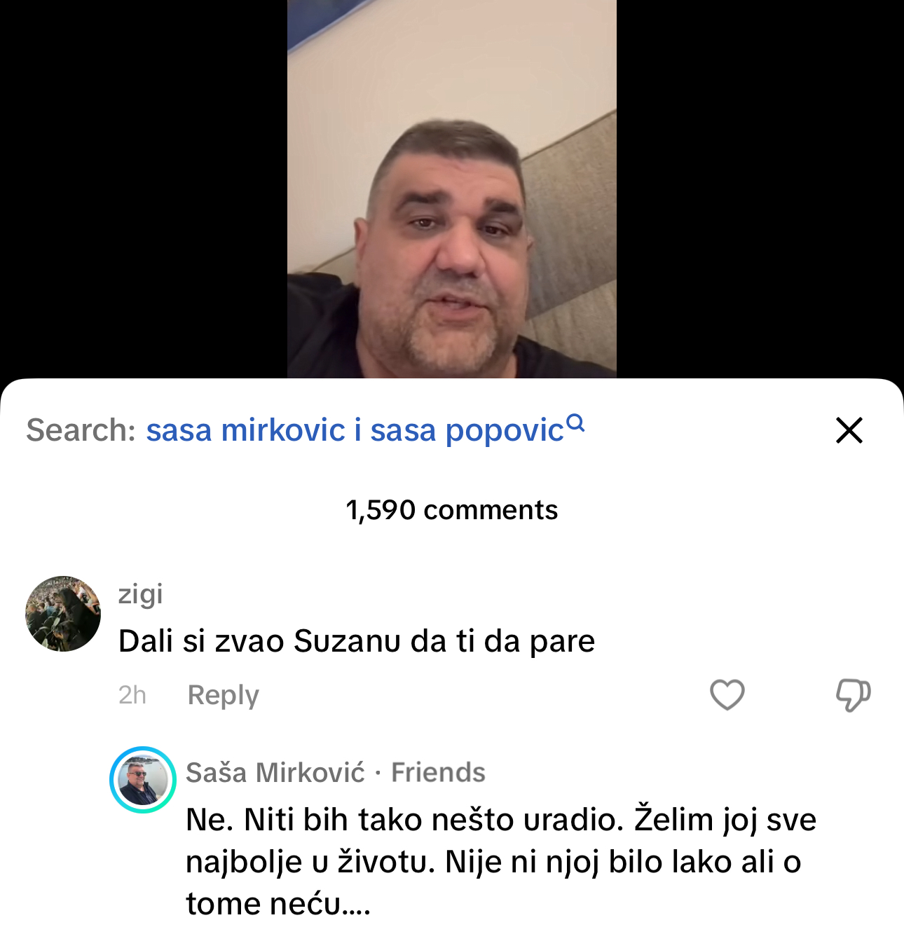 “Da li si zvao Suzanu da ti da pare”, glasilo je pitanje korisnika, nakon objave Mirkovića o dugu Saše Popovića: