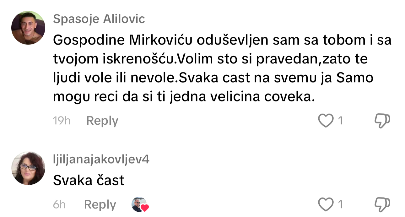 Ono što je zanimljivo da iako se konstantno povećava broja pratilaca i komentara kao i pregleda, Mirković odgovara na komentare i u komunikaciji je sa pratiocima.