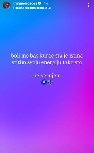 Na svom storiju Mimi je poručila: