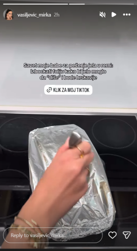 „Savet moje babe za pečenje jela u rerni: Izbockati foliju kako bi jelo moglo da ‘diše’ i bude hrskavije„, napisala je Mirka, koje je, sudeći po komentarima, mnoge dirnula zbog toga što je pomenula baku. Ako uzmemo u obzir da mnoge bake uče unuke da spremaju hranu.