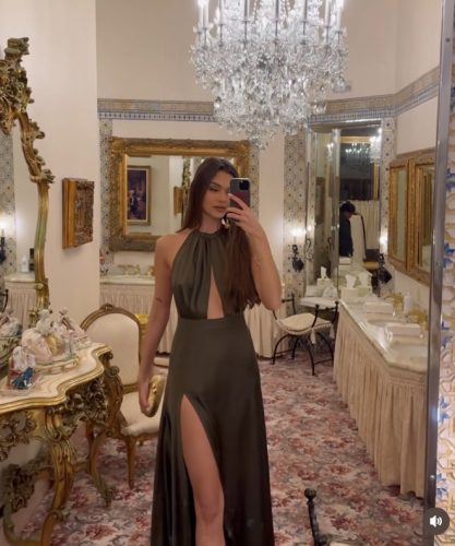 Hrvatska misica pozirala je u elegantnoj satenskoj haljini maslinastozelene boje, otvorenih leđa i sa dubokim prorezom, ističući svoju figuru.