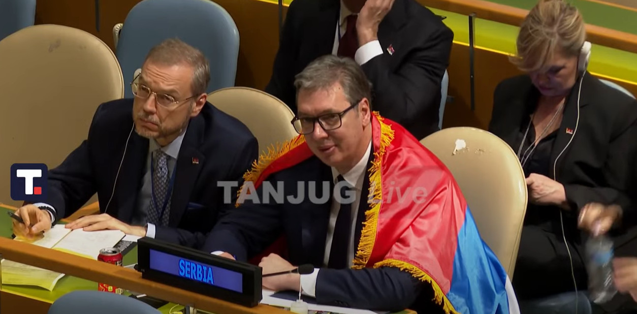 Vučić se ogrnuo srpskom zastavom Nakon usvajanja sramne rezolucije o Srebrenici, predsednik Srbije Aleksandar Vučić se ogrnuo zastavom Srbije u…