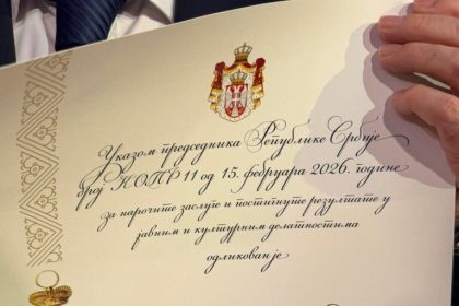U svečanoj ceremoniji održanoj u Palati Srbije, direktor Kulturno-prosvetne zajednice Beograda, Živorad Žika Ajdačić, odlikovan je Sretenjskim ordenom drugog stepena…
