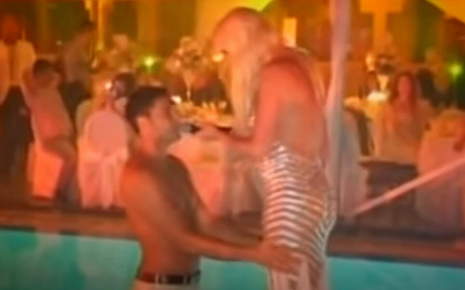 Svečana ceremonija počela je kraj bazena u prisustvu pedesetak zvanica. Jelena je blistala u beloj haljini ukrašenoj poludragim kamenjem, a u ruci je držala bidermajer napravljen od belih ruža.
