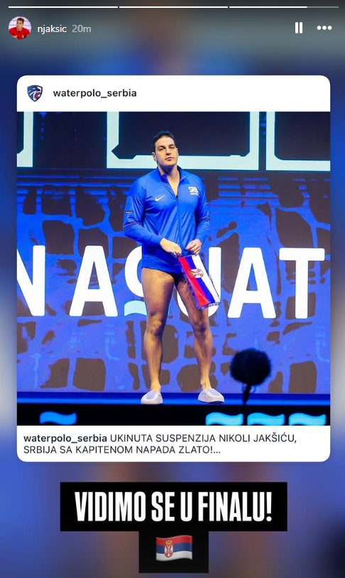 – Vidimo se u finalu – napisao je Nikola Jakšić, uz zastavu Srbije.
