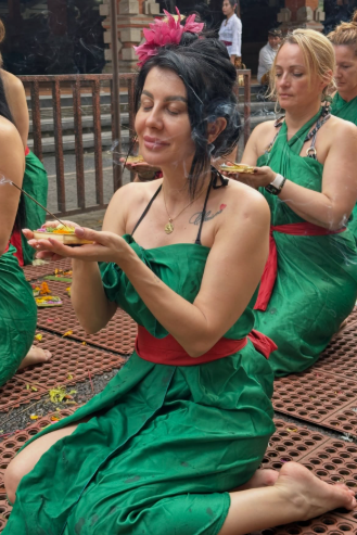 Na Baliju je Olja učestvovala u psihološkim radionicama, ceremonijama, zvučnim Gong kupkama i jogi, fokusirajući se na otpuštanje trauma, otvaranje srca i prepoznavanje prošlih života.