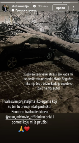 – Doživeo sam veliki stres i šok kada mi se desila ova nezgoda! Hvala Bogu što niko nije bio u blizini kada je ovo drvo palo na moj auto! – napisao je Stefan i dodao.