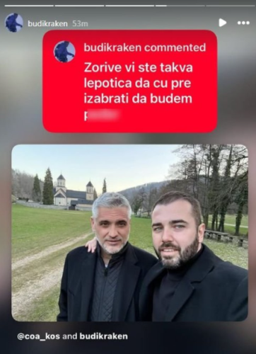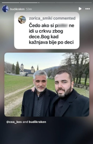 Naime, Jovanović je najpre podelio zajedničku fotografiju na kojoj zagrljen stoji sa Aleksandrom Kosom ispred manastira, uz kratku poruku, nakon čega su usledile brojne reakcije pratilaca.