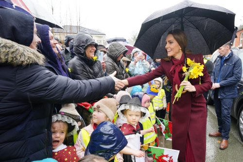 Princeza Kejt iako po kišnom i ružnom vremenu za šetnju, pojavila se u Visećim vrtovima u Lanidlosu, Vels, uoči Dana Svetog Davida. Sama je držala kišobran u ruci, a od okupljenih mališana dobila je žuto cveće!
