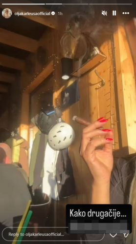 Nakon skijanja, Olja je odlučila da napravi pauzu i odmori se u obližnjem kafiću, odakle je objavila snimak na kojem se vidi kako puši tompus. U opisu snimka kratko je napisala: „Kako drugačije“.