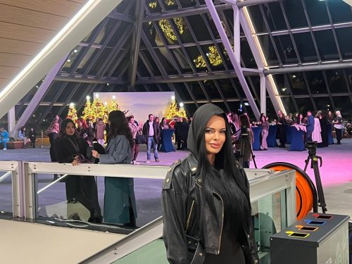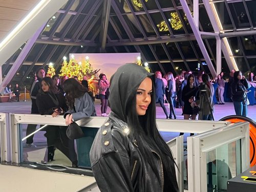 Ona se na koncertu pojavila u izazovnoj crnoj kombinaciji sa kapuljačom na glavi, te je nasmejana i nikad lepša pozirala pred kamerama sedme sile.