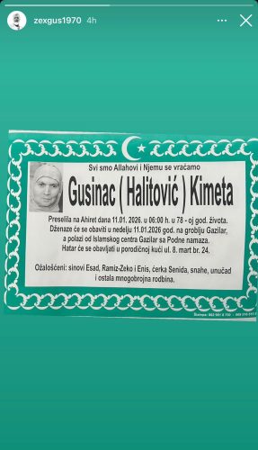 Ramiz je podelio fotografiju umrlice, bez dodatnih komentara, a objava je izazvala veliki broj reakcija i poruka podrške njegovih pratilaca