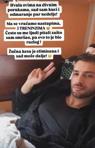 – Hvala svima na divnim porukama, sad sam kod kuće i odmaranje par nedelja. Posle toga se vraćam treninzima i nastupima – rekao je on, pa dodao: