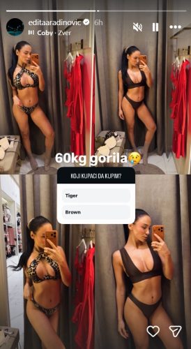 Pevačica Edita Aradinović podelila je na Instagramu fotografije u dva različita kupaća kostima. Tom prilikom zamolila je pratioce da joj pomognu u izboru i glasaju koji model joj bolje stoji i koji bi trebalo da kupi.