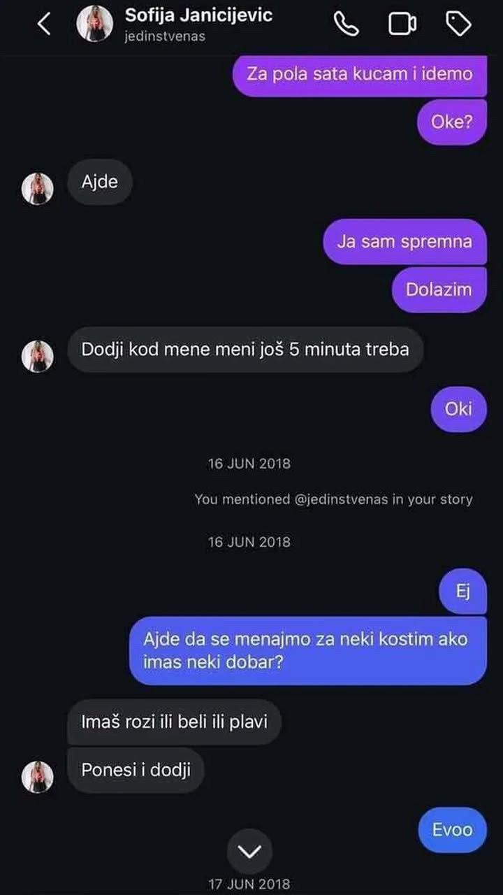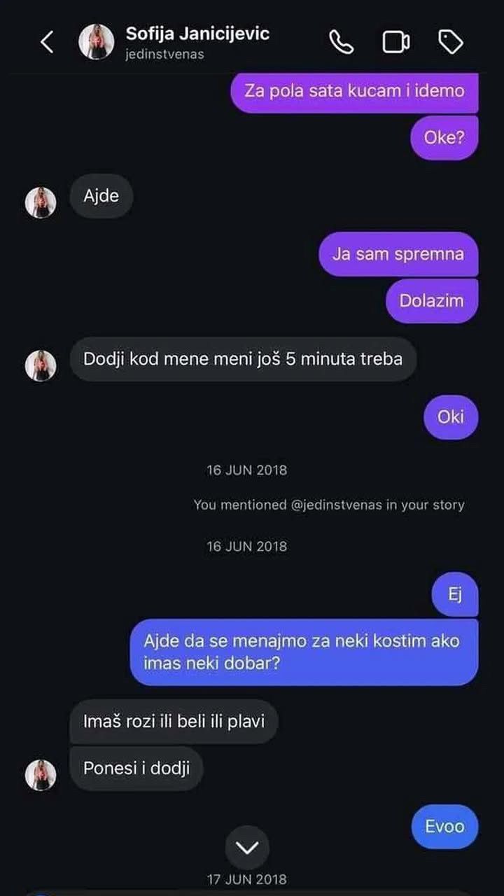-Za pola sata kucam i idemo. Oke? – pisala je devojka Sofiji.