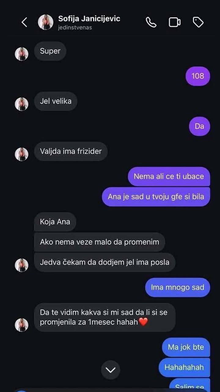 Između ostalog, Sofiju je koleginica upitala: „ko je od devojka sve dole, je l ima posla?“, na šta joj je ona odgovorila da ne znam jer ne radi.