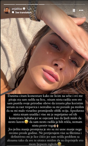 Dok je jedni podržavaju i ističu da je vidljiv napredak, drugima se ne dopadaju sve promene koje je napravila, zbog čega se Anja često susreće i sa negativnim reakcijama. Upravo iz tog razloga, influenserka je odlučila da jednom zauvek stavi tačku na nagađanja i pitanja o svom izgledu, jasno navodeći koje su navike i odluke dovele do promena koje danas ima.