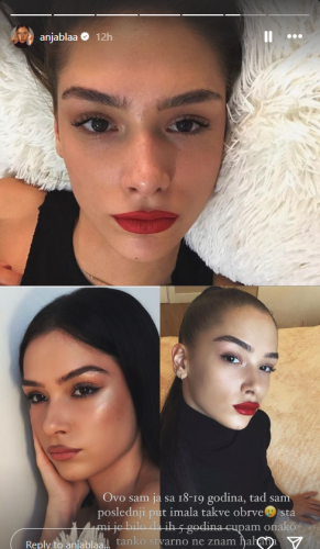 Anja je često pričala i o svojim obrvama i o tome na koji način su dobile oblik koji sada ima, pa se i ovom prilikom dotakla te teme.