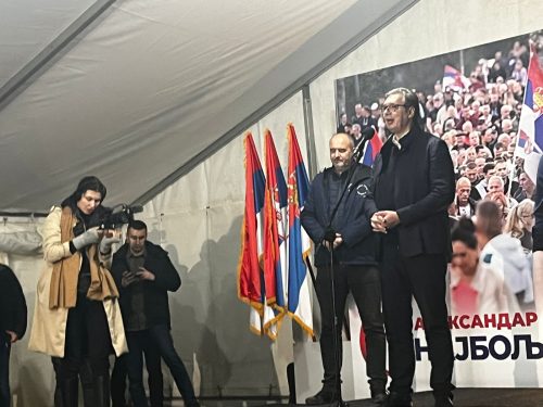 – Danas kada se svi pripremaju za rat, kad pričate i kad se naoružavate, na tome ćete i da završite. A mi ćemo da damo sve od sebe da odbranimo mir, da čuvamo za budućnost, da čuvamo stabilnost i mir. Nije jednostavno i neće biti jednostavno. Nikad nije lako čuvati samostalnost Srbije i boriti se za svoju zemlju. Ponosan sam što sam sve ove godine uspeo, a to ne bih mogao bez vas, da se borim za interese Srbije. Srbiju volim više od svega i jedino mi je Srbija važna.