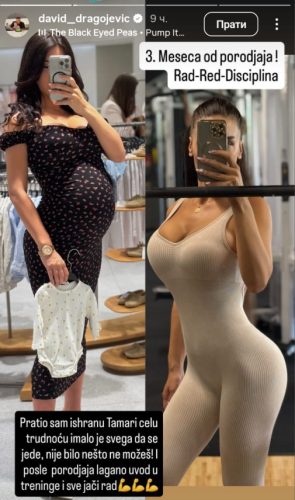 – Tri meseca od porođaja. Pratio sam ishranu Tamari celu trudnoću, imalo je svega da se jede, nije bilo nešto da ne možeš! I posle porođaja lagano uvod u treninge i sve jači rad – napisao je on uz fotografiju.