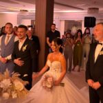 Aleksandra je zasijala u prelepoj venčanici s dubokim dekolteom i dugim šlepom, dok je Stevan bio u svečanom crnom odelu. Mladenci su stigli u restoran u sjajnom raspoloženju, pozirajući okupljenim fotoreporterima.