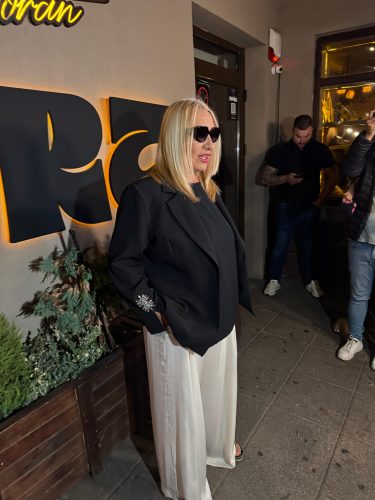 Vesna je izašla iz svoje besne mašine, a na prvi pogled su svi mogli da zapaze zanimljiv sako i bele pantalone koje Vesni savršeno stoje.
