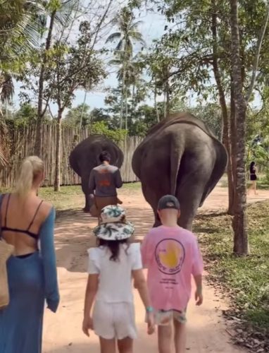Kristina je objavila niz fotografija na kojima se vidi kako se Nataša igra sa decom na plaži, a potom i kako su zajedno obilazile akvarijum. Kasnije su se uputile i u šetnju sa slonovima.