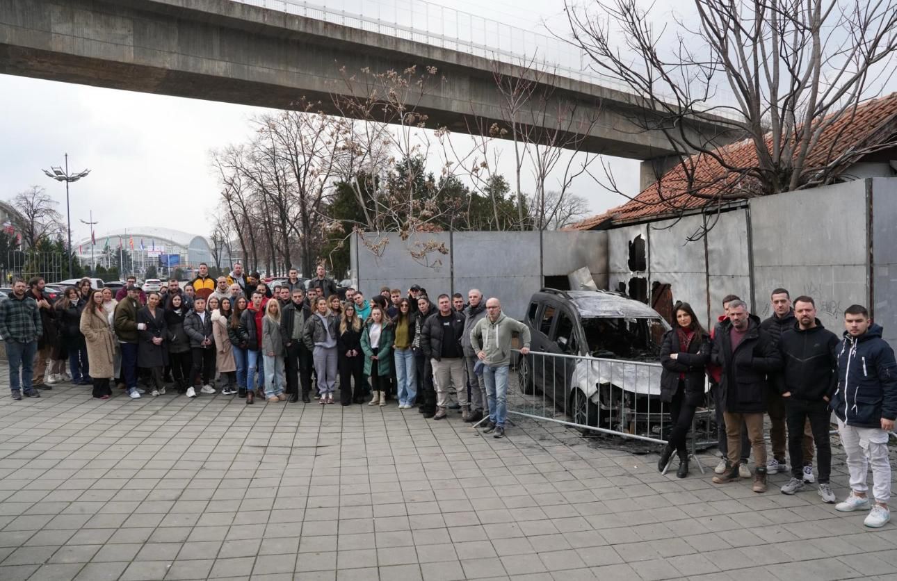 Sada su zaposleni Hype televizije okupljeni stali pored zapaljenog vozila apelujući na nadležne organe da u što kraćem roku uhvate počinioca.